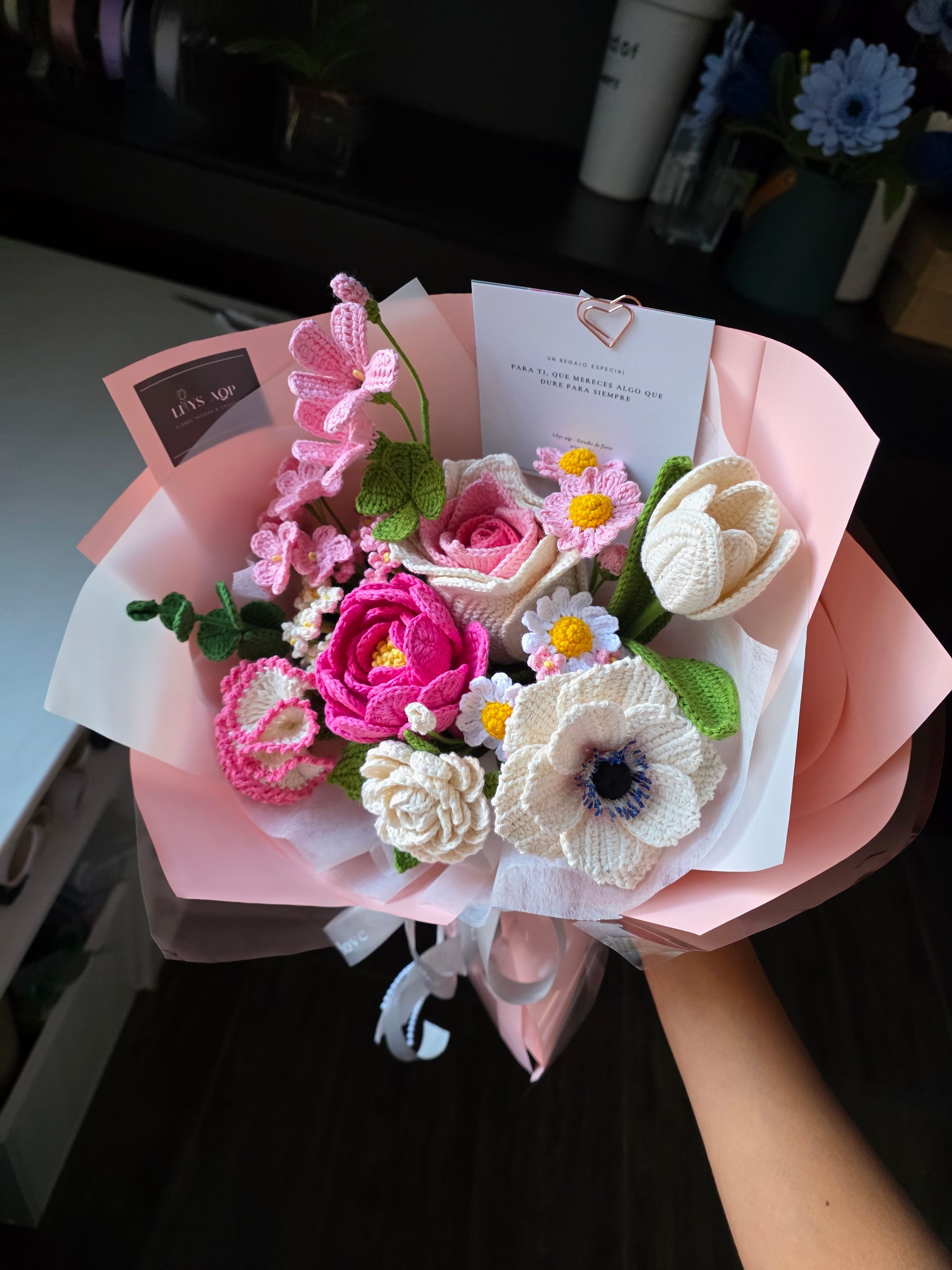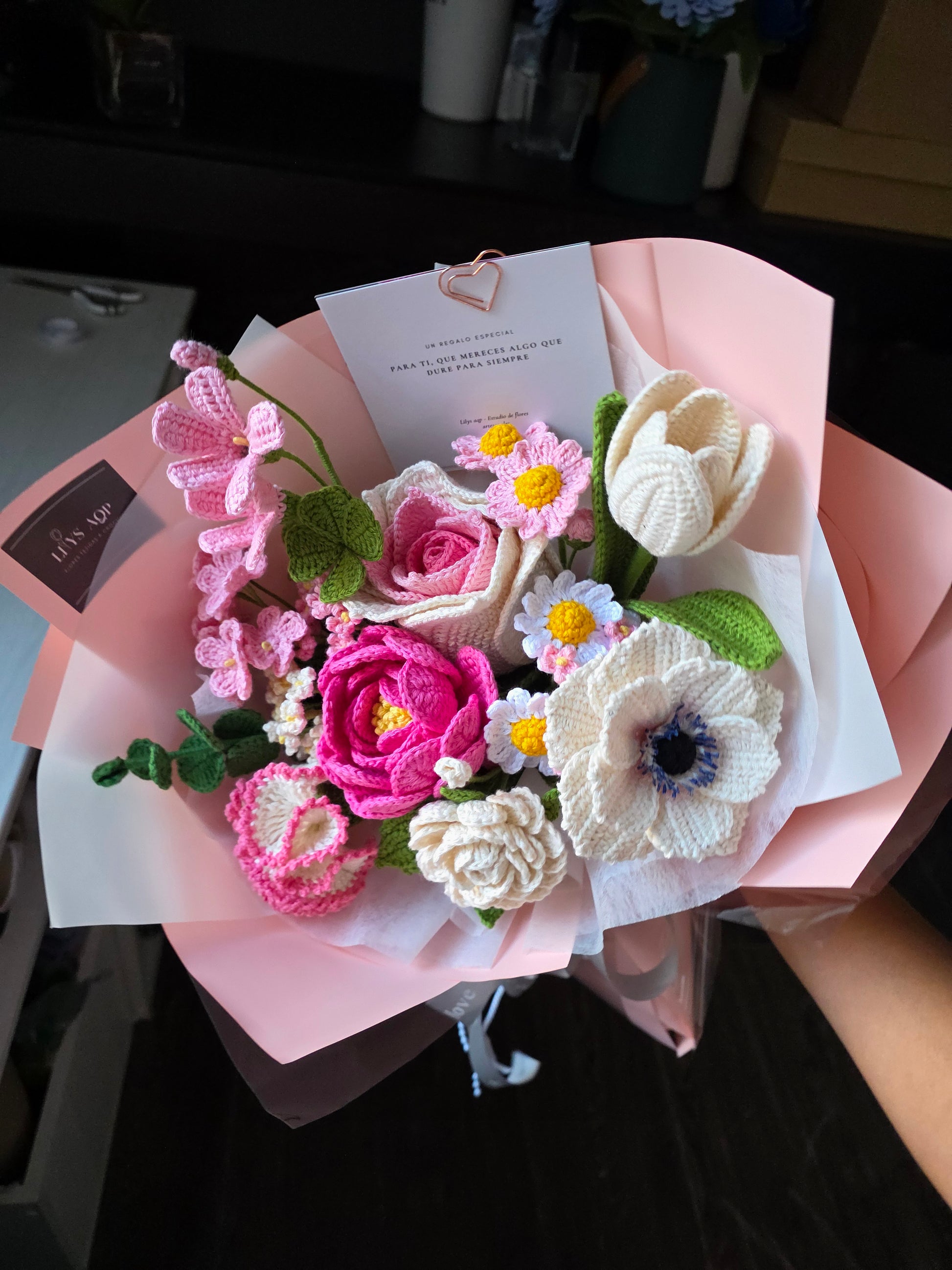 Este ramo se elabora solo por encargo, puedes separarlo por WhatsApp con 4 a 10 días de anticipación. Te confirmaré el tiempo exacto por WhatsApp.